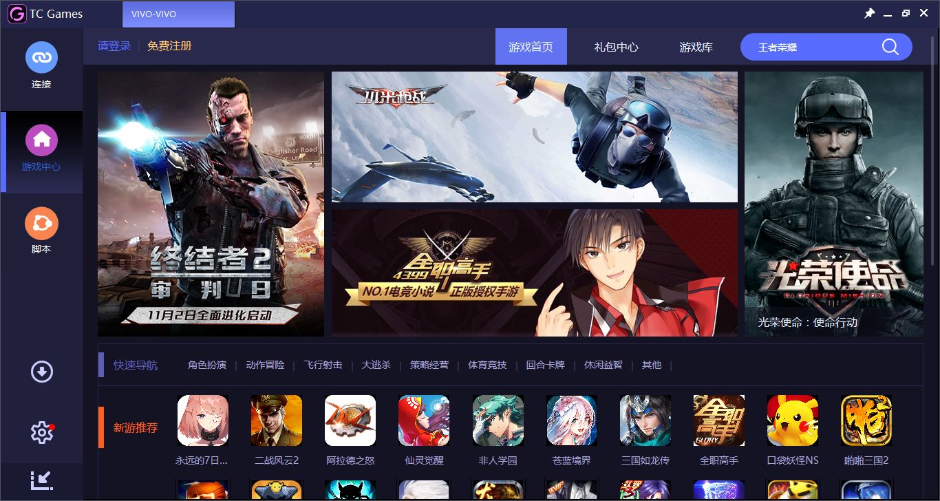tc games是一款非常实用的电脑投屏软件,可以帮助用户将手机屏幕轻松投射到电脑上,便于用户进行玩游戏、运行软件、浏览信息等操作。tc games电脑版不仅支持录制、截屏、屏幕移动、脚本编辑等功能,而且画质也是十分的清晰,为广大用户带来更加舒适流畅的游戏体验。tc games无需繁琐的操作步骤,只需通过数据线或WIFI网络等方式将手机与电脑进行连接,即可快速将手机屏幕投射到电脑,无论你是配合直播还是玩游戏的时候使用,该软件都是你首选的一款投屏神器。