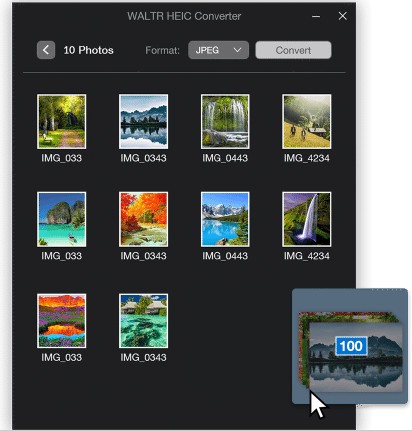 WALTR HEIC Converters是一款可以帮助用户把HEIC格式的图片转换成其他格式的软件。软件的操作十分简单,只要把需要转换的图片拖入窗口,就会自动转换了,方便苹果用户将Iphone中的图片导出并在其他设备查看。