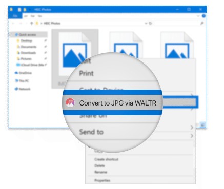 WALTR HEIC Converter将识别任何来自你的iPhone的文件。这就是为什么我们让你在PC上转换.heic照片变得非常容易的原因。只需右键单击照片,然后从菜单中选择“转换为JPG”。