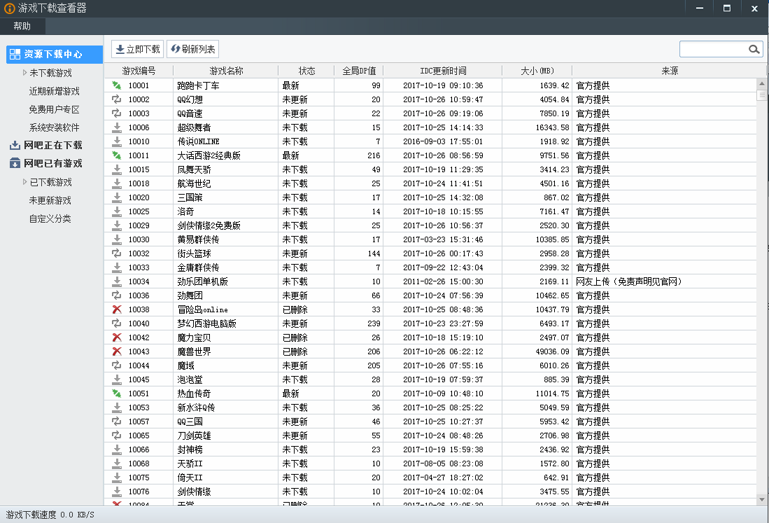 4.点击确定后,可以进入下载查看器,对网吧的游戏进行查看、下载、更新和修复。