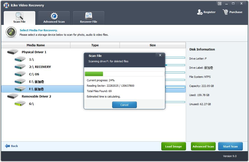 iLike Video Recovery官方版是一款界面清晰、功能实用、专业可靠的视频恢复软件。iLike Video Recovery官方版可以帮助用户轻松地从硬盘、清空的回收站、存储卡、SDHC等中检索已删除或丢失的MP4、MPEG、AVI、MOV、3gp、WMV等视频文件。iLike Video Recovery给大家带来了不一样的感受。【软件特点】