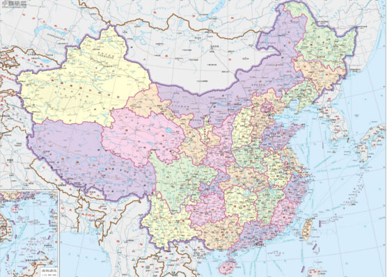 2.用轮廓线或色块表示中国疆域范围,南海诸岛范围线可不表示,但必须表示南海诸岛、钓鱼岛、赤尾屿等重要岛屿岛礁;