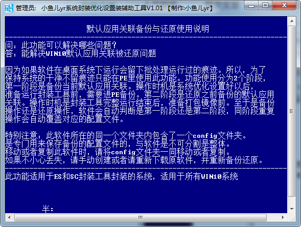 小鱼儿yr系统封装优化设置辅助工具破解版是一款专门修复电脑系统封装问题的软件,如果你发现自己在进行脑系统封装的时候出现被还原问题时,就可以使用这款软件来马上进行修复处理。