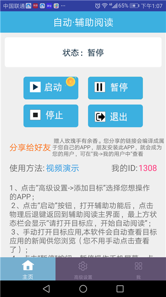 1、点击“启动”按钮,打开辅助功能后,点击物理后退键返回到辅助阅读主界面。2、打开目标应用如(腾讯新闻)本软件会自动打开新闻供您浏览(您不用手动点击查看。