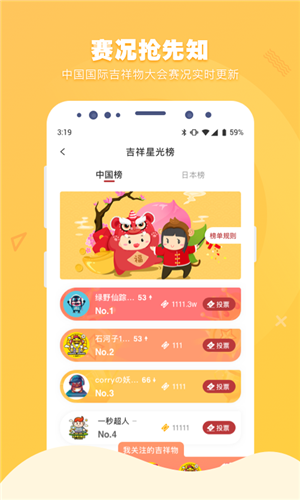吉祥物大会官方指定投票,赛况抢先知,快来助力你pick的吉祥物成为明日之星吧。