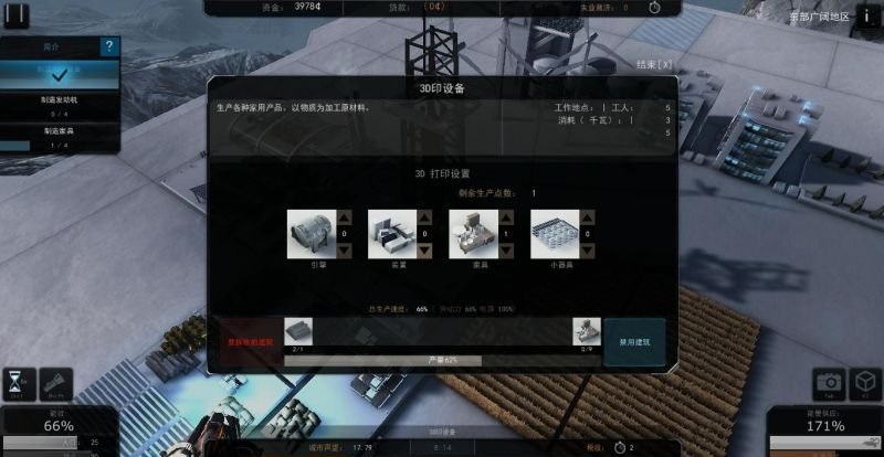 拿3D打印中心为例。2点生产点数,表示目前3D打印中心只能够同时生产两样商品,当一次生产结束后,玩家要重新分配生产点数,那么3D打印中心才会开始下一轮的生产(无自动化选项)。