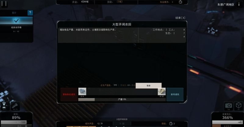 人口能效:显示在屏幕的左下方。显示在岗人数,影响生产速度和建筑功能。但人口效能不能影响太阳能板、风力发电等能量获取建筑的效能。