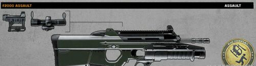 一件比利时产的全自动突击步枪。无托式的枪身能支持多种瞄准镜与挂件,使其能胜任任何任务需要。