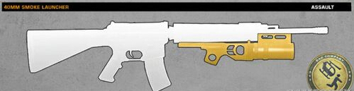 俗称烟雾弹。在突击步枪上装备烟雾弹发射组件。使用后能产生烟雾。烟雾范围不大、掩护效果一般。若是在烟雾范围内的我方单位已被敌军标记/报点,则标记/报点失效。未被标记/报点的我方单位在一定时间内对标记/报点免疫。