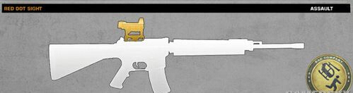 俗称红点镜。在突击步枪上装备反射式光学瞄准具代替机械瞄准具。红点镜进入精确瞄准的速度较高,适宜近战。
