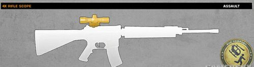 俗称4倍镜、4X镜。在突击步枪上装备4倍率望远式光学瞄准具代替机械瞄准具。4倍镜视野广,放大倍率高,适宜中距离作战。