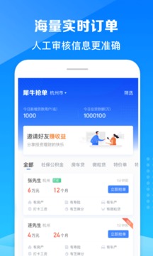 犀牛抢单app是一款为所有的信贷经理提供的接单抢单软件,这款软件会实时更新所有需要借钱贷款的客户订单,你可以通过犀牛抢单app来进行迅速接单,这样就可以快速提升你的业绩。