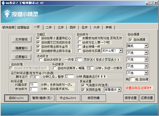 qq夜店之王辅助支持后台自动收集星星,qq夜店之王辅助支持自动升级库存,qq夜店之王辅助支持自动调制,qq夜店之王辅助支持自动参加派对,qq夜店之王辅助支持自动买喝的