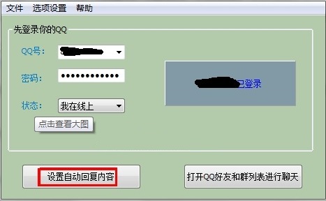 登陆QQ成功后,即可点击“设置自动回复内容”进行设置。
