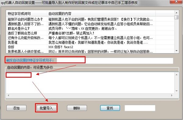 我们需要输入触发条件及自动回复内容(支持导入文本),输入完毕后点击“添加”即可。