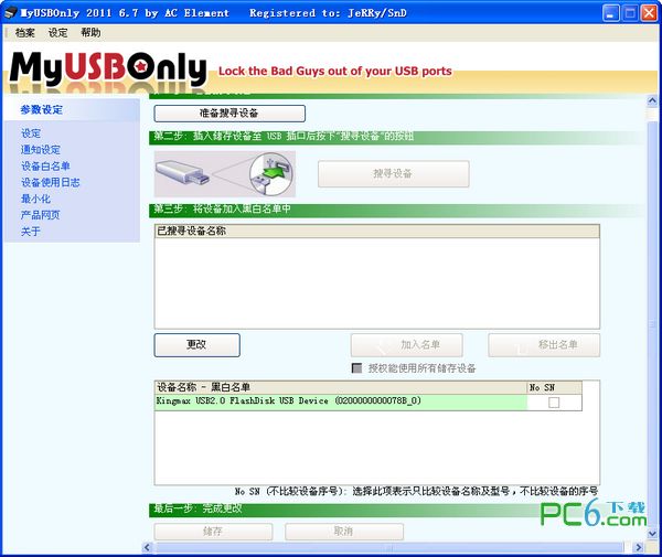 MyUSBOnly采用的是白名单的形式来管理USB设备,对于在白名单中的USB设备,MyUSBOnly才允许其在系统中正常使用,否则就拒绝该设备的连接。