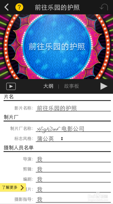 8、也可以一开始就选择预告片,选择一个预告片后有大纲和故事板两块内容,可以自己编辑大纲,导演等等,