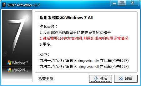 起点提供win7激活工具下载,win7激活工具采用一键式激活,激活后无OEM信息和GRUB启动信息,和正版一样,可以通过微软正版验证,可以自动更新。win7激活工具使用简单,完全是一键WIN7激活,成功率极高,可以激活所有版本的Win7。