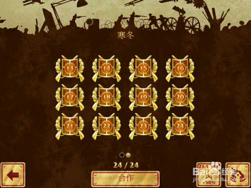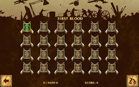 能力强化共有25种,需要注意的是强化防御单位是要花费通过关卡时获得的星星来进行的,过关评价越高获得的星星也会越多,就可以进行更多的强化。尽量获得高评价来强化单位能力,才能顺利的通过后来的关卡。游戏分成了FIRST BLOOD和HARD WINTER两个模式。其下分为24个关卡,内容还是挺丰富的,之后还会有一个隐藏模式的出现。