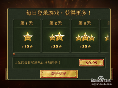 1.每次进入游戏,都能领取每日奖励,刚开始玩的时候不要忘记领取免费星星,只要有网,点击即得,并不需要多做什么(比如评分,点击后弹出苹果商店,什么都不做回到游戏后也能得星星,当然,不推荐这么做。)