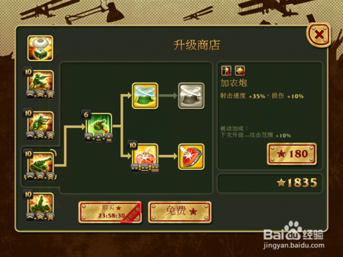 和一般的游戏中等级提升,能力就获得相应的提升所不同的是,在玩具塔防游戏中,等级的提升带来的能力提升并不是直线上升。总体来说,前三级提升最大(一杠到三杠)。之后的梯度有一颗星,两颗星,大星。每到这样的节点,能力提升都很大,而中间的一星一杠之类的点,提升则很小,花钱却不少。所以升级的总体思想是,只提升到高效节点。比如一个大兵,如果只是普通用用,升级到一颗星即可,后续要重用的话,再升两颗星。总之,要么就升到对应节点,要么就不升,不要只升到一星两杠之类的,费了很多钱,能力却和一星差不了多少。