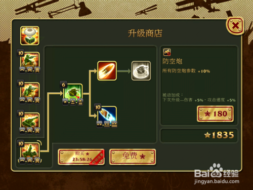 不升级防空是性价比最高的选择,但因为它只攻击空中目标。飞机集体群飞,就是一架接一架这种海量群飞,适合分散来布局,防空枪兵基本上起不到什么作用。数量不多的高速飞机或单个大boss,非常适合用防空枪兵跟防空组合。2星级防空550元,性价比0.49但是是一个很重要的停留等级。如果再升级不仅耗资而且性价比不高,所以不建议继续升级