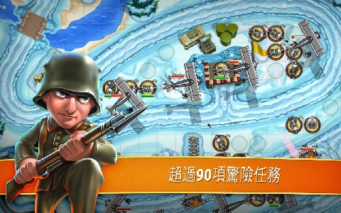 游戏中的防御单位有步兵,喷火兵,加农炮和防空炮四种。每一个防御单位都会有三个升级阶段,同时还会有能力强化分支,可以通过升级来让防御单位具备各种不同的特性。