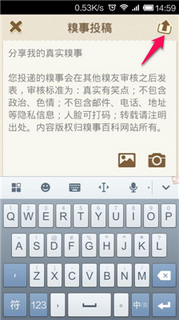 在糗事百科的首页,选择右上角的按钮进入发布页面。