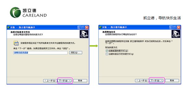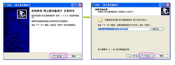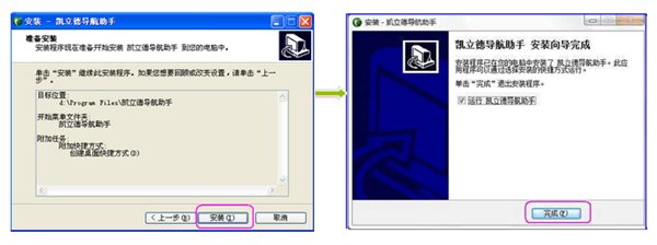 下载凯立德导航助手安装文件。双击导航助手安装文件,弹出凯立德导航助手安装向导,根据向导提示操作,完成导航助手的安装。