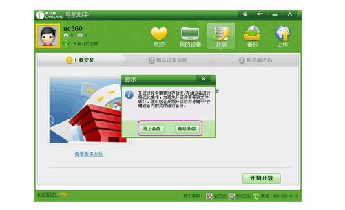 导航设备或者装有导航软件的存储卡连接电脑后,导航助手将显示您的设备是否有可升级版本。若有可升级的版本,点击导航助手菜单栏的「升级」,进入升级界面。 在升级界面可查看最新版本的详细信息,升级前请确认您的设备存储空间大于升级文件大小。点击「开始升级」,系统将提示是否对存储卡内文件进行备份,请按照提示进行备份。