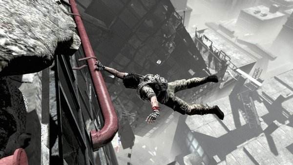 灰蒙蒙的大地,空气中到处都是该死的尘埃,整洁的城市看起来简直一塌糊涂,游戏画面给人带来的感觉就是压抑与低落。在游戏中很多时间我都觉得我在黑白电视上玩游戏,这个游戏都看不见颜色,但是要是说没有颜色是瞎扯,游戏中还是有颜色的,但是绝大多的颜色都是黑色灰色和白色,整个人一直处于梦境中,可能游戏的创作人员向给与玩家强烈心理暗示,游戏流程中本身就需要大量的攀爬和解谜技巧,都要在这样的色调下克服种种困难几乎绝望的去完成任务。除此之外,其他的画面就无力吐槽了,大量的颗粒和马赛克,风沙、光照、远景的渲染与处理,都做的不到位。