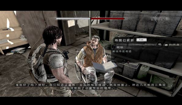 然后再往后就会走到路口,如果是往左边走的话那么就会发生小剧情,然后还是往右边走吧,按TAB查看地图只要跟着红色的提示走就可以了。