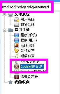 打开文件系统,依次找到/var/root/Media/Cydia/AutoInstall/这个路径。将需要安装的DEB文件拖入右边即可。