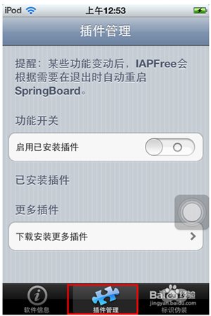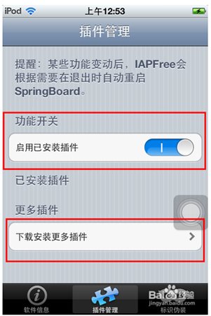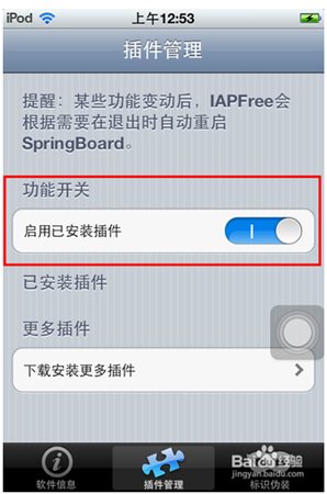 选择“插件管理”,把“启用已安装插件”的开关打开,这样能保证在内购额时候安装的游戏插件能顺利生效。