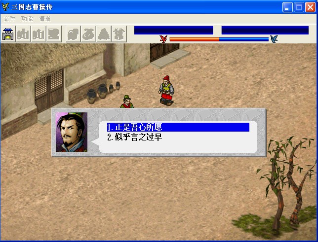 当这个值红色不大于85时。根据你的选择则可以进入史实路线。这个路线和霸王的关卡和流程完全一样、只是结局是曹操去世,曹丕继位。游戏通关得到金色铜雀。