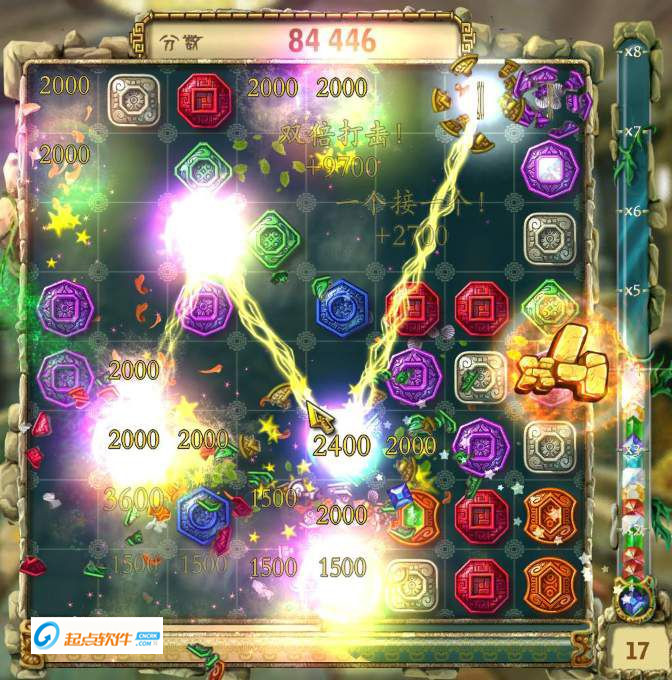 1. 某些小牌上面镶嵌着宝石,粉碎这些小牌就可以收集宝石。
