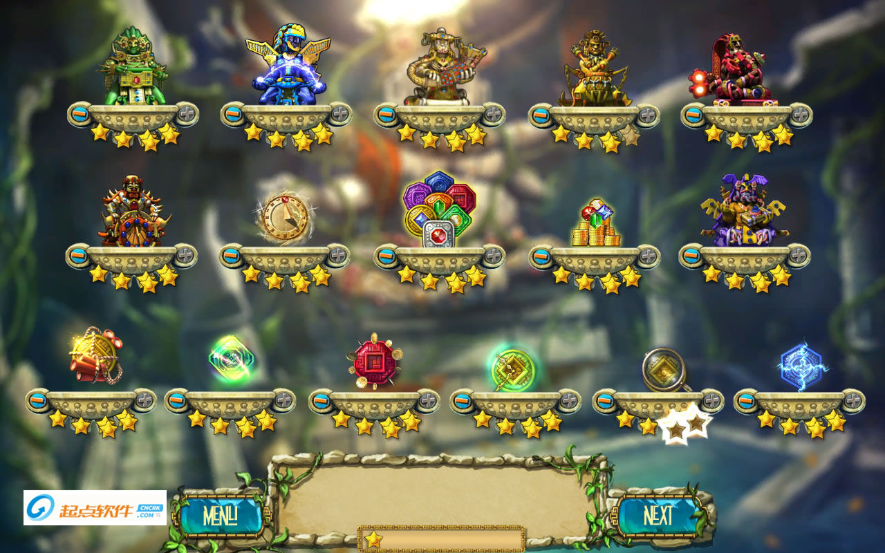 蒙特祖玛的宝藏3游戏中图腾不再是僵硬的几块彩色石头,而是活灵活现的“动作明星”,图腾回报丰富,可帮助玩家获得无数的连击。基本上每一关都可以通过完成指定分数赚取一个金星奖励,所有的嘉奖关均为消除所有屏幕中的砖块。当然游戏中更改最大的部分在于:游戏改为了一分钟限时游戏,完成规定的总分从而得到金币。