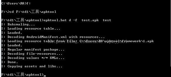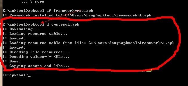 5、 输入apktool d systemui.apk(回车),看到下面就成功一半了