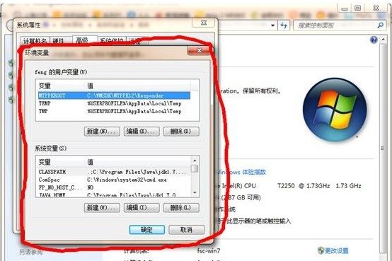 接着(以win7示例,xp也差不多)以此打开 计算机-属性-高级系统设置-高级-环境变量,