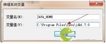 变量值为 C:\Program Files\Java\jdk1.7.0(即刚才的安装路径,视自己情况而定)