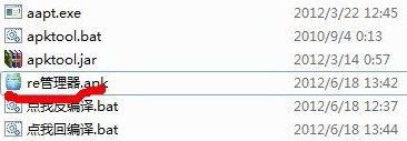 1、 将“re管理器.apk”拉进apktool文件夹内,如下: