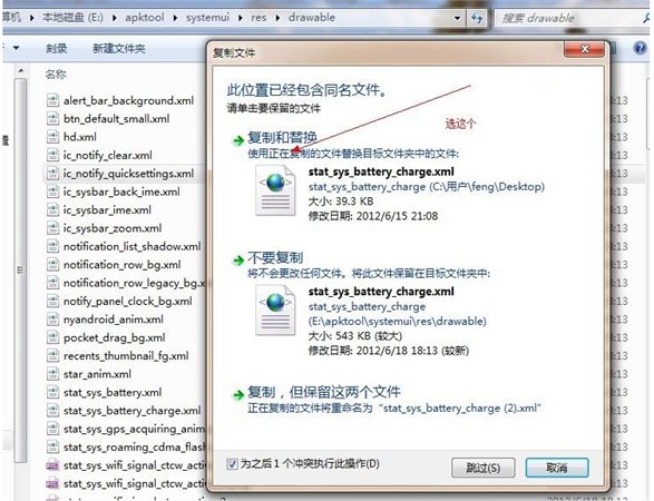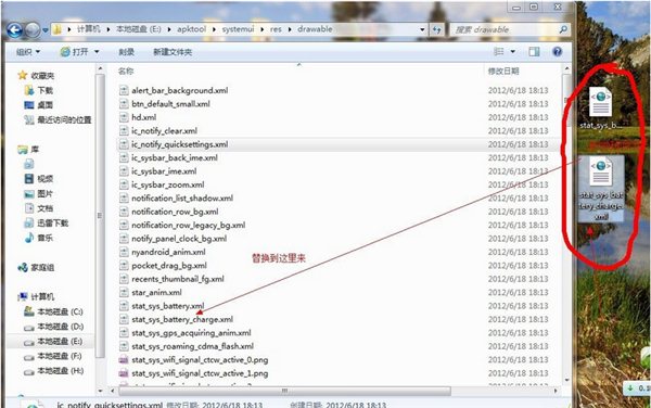 7、 然后将你需要的电量图标复制到apktool\systemui\re s\drawable-hdpi里边。