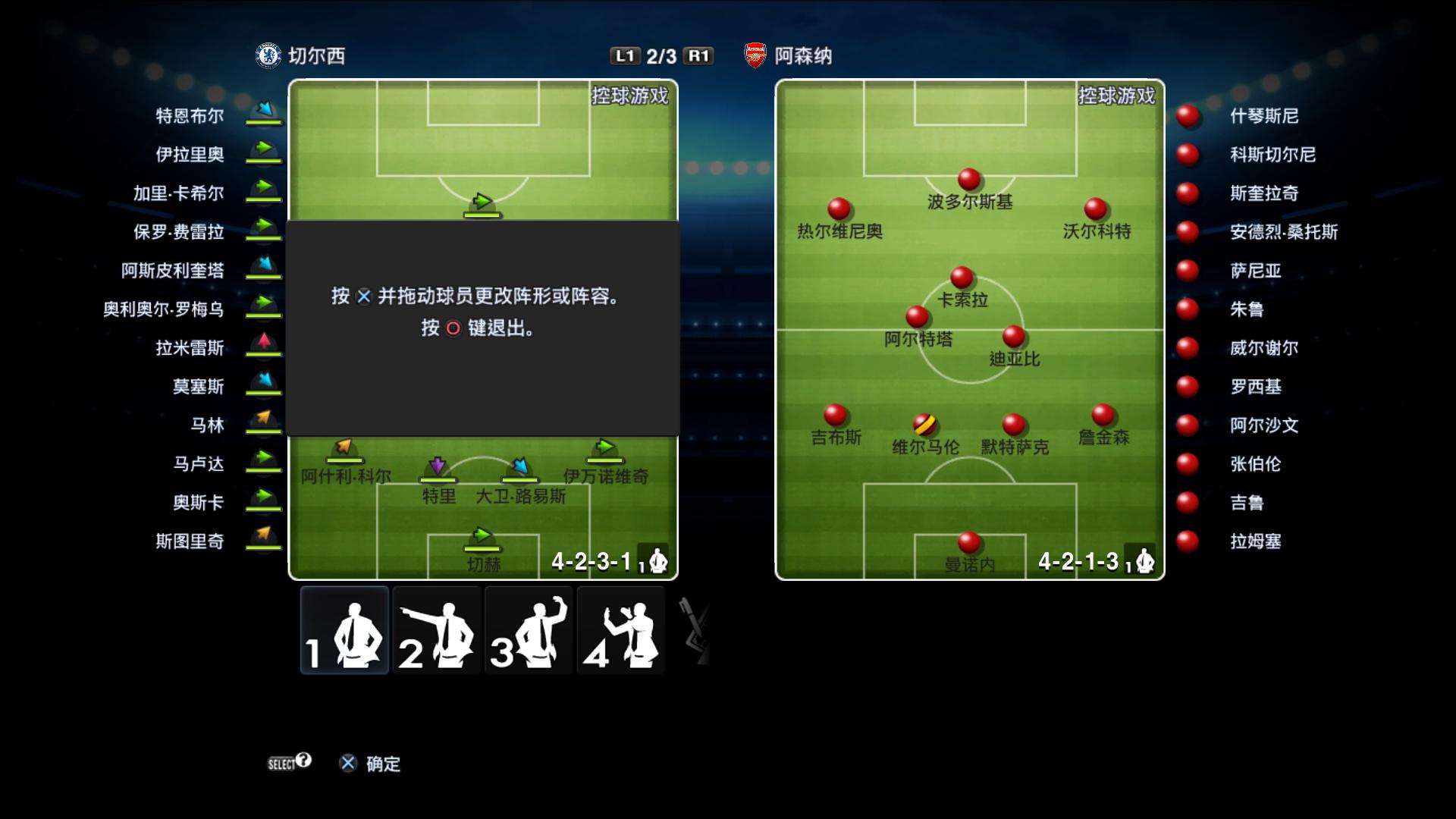 对于战术上来说的话,一般阵形是4个后卫,用“控球游戏和全力反击”比较顺手。我用“快速反击”是因为对防守不够自信。