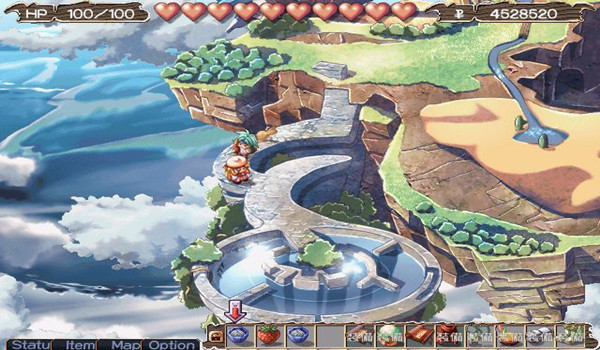 ★右上角的池子中有泉之妖精,随便找个东西扔进去,会给你有关探索迷宫得分计算的情报,如果在迷宫拿到金币(GoldCoin)以上的评价,就能获得宝物。