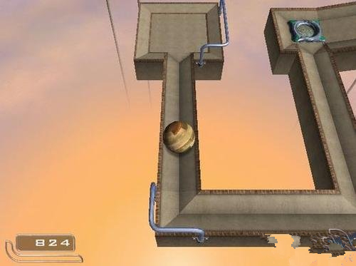 这儿是一个小难点,同时也是ballance的基本技巧之一.在最后一个机关变成石球,然后一路前冲,可以吃到2个分数.(注意:同种球不会被机关抓到,这个技巧以后要用到)