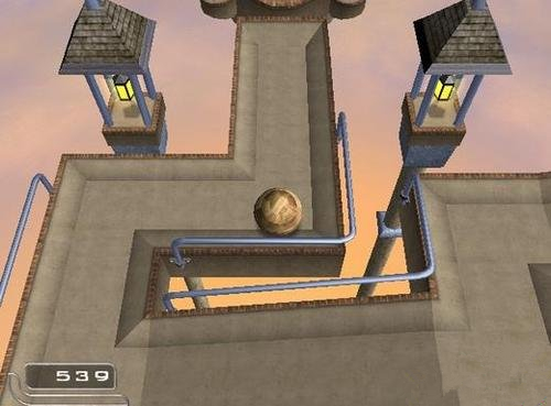 第四关,u形木板要左右晃一下,才能过去.(木球摩擦大),在接下来的拱形木板上,后面的分数吃不到就不要吃了,以后大家水平够了,肯定能吃到.走过几块方格形状的地板,来到存档点.注意,再向前走,会有12个石球落下,小心不要被砸下去.过了之后,是下坡,控制速度和方向,躲开木板上的洞,走上左面的木板,上面有4个石球,撞下第一个,然后紧贴它向下冲,可以通过.