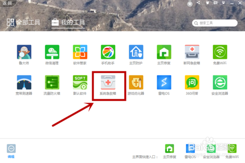 之后在360安全卫士点击工具箱,打开工具箱找到“360系统急救箱”如果没有可以先添加这个功能
