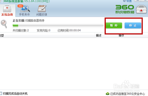 之后点击系统急救箱的“开始急救”就会对系统进行扫描,如果有病毒什么的都会扫描出来