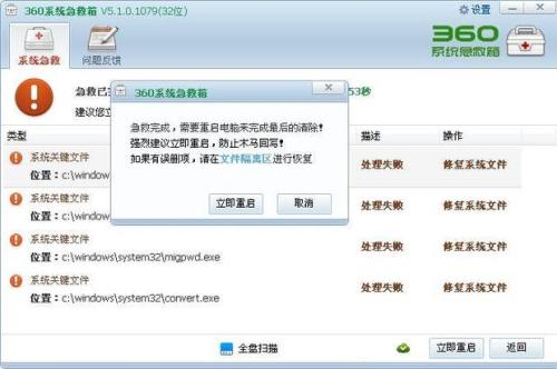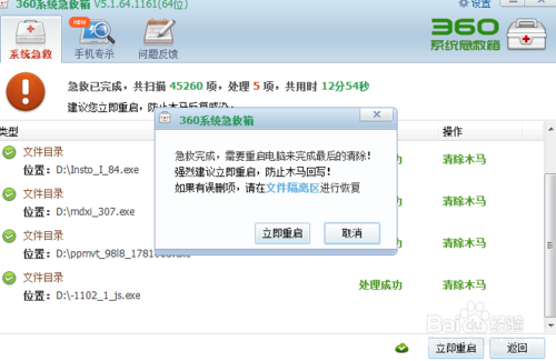扫描结束,就会自动处理完问题,之后重启电脑即可
