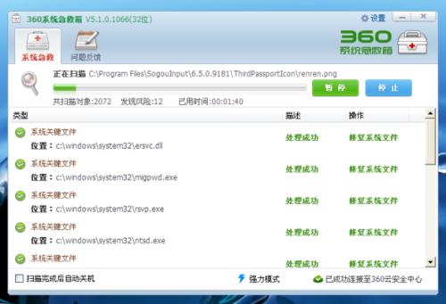 可查杀机器狗、U盘病毒、磁碟机等数十种顽固型木马;并修复360安全卫士及360保险箱。